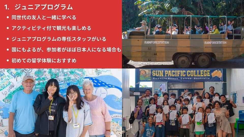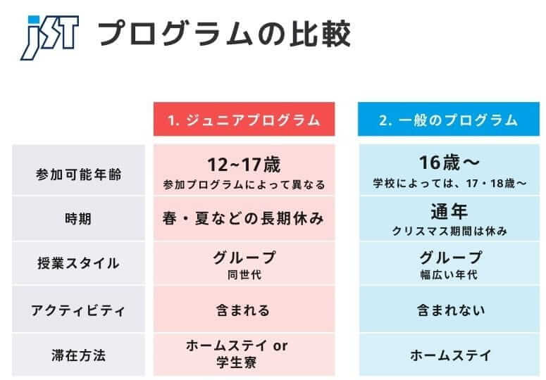 中高生が参加できる短期留学には「ジュニアプログラム」と「一般英語プログラム」の2種類があります。これらは受け入れ年齢やプログラム内容が大きく異なるため、どちらを選べるかは年齢によって決まってきます。