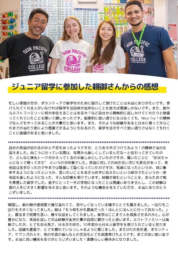 研修先のSun Pacific Collegeは、高い教育水準を持つ語学学校として人気の老舗校です。授業以外にも毎日の英語日記(担任の先生が毎日チェックします)などがカリキュラムに含まれ、良い習慣をつけ、しっかり英語を学ぶことができる学校です。