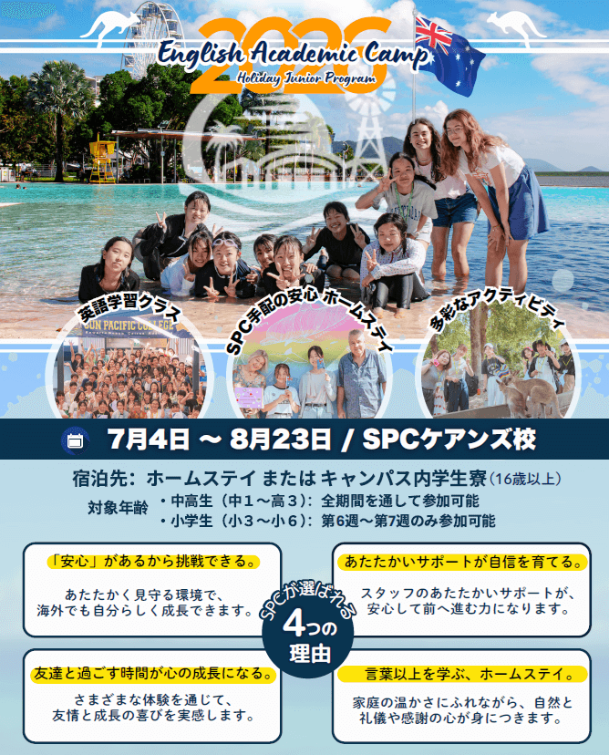 2026年夏 オーストラリア ケアンズ ジュニアプログラム