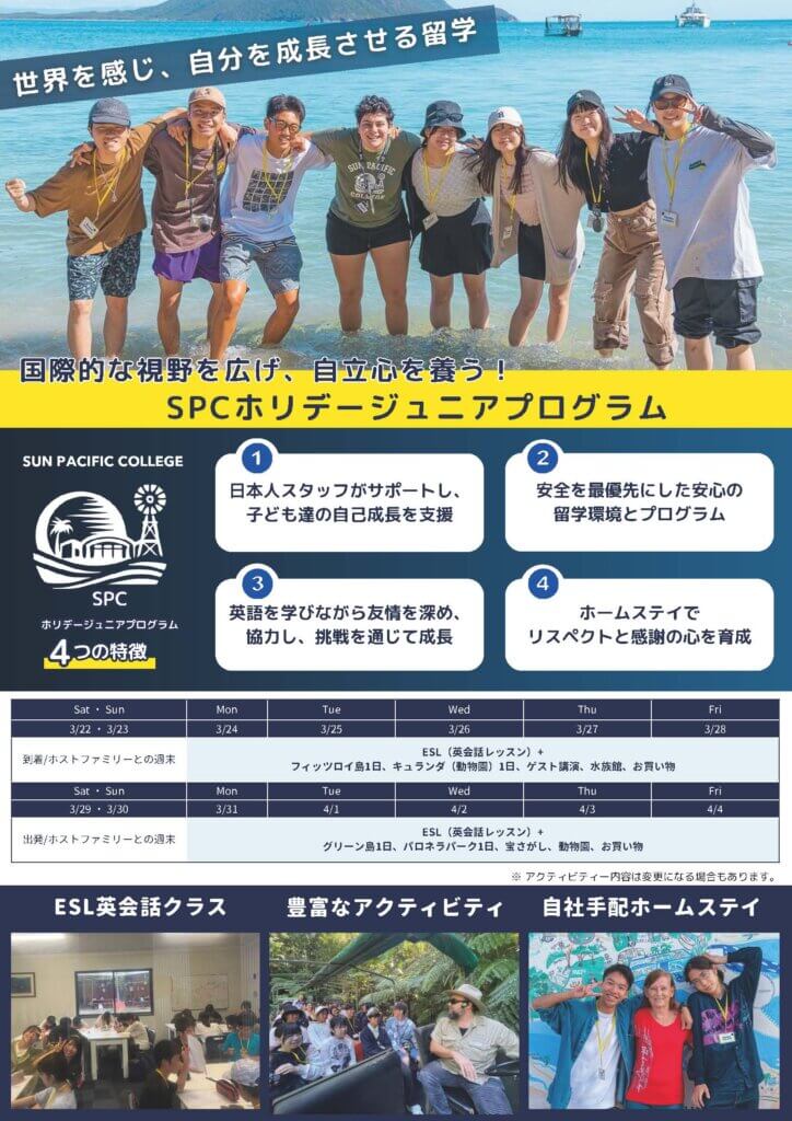 この夏、1,200名の留学生が参加した大人気の留学&ホームステイプログラムが、春休みも開講します。対象は12 歳~18 歳(中学1年生~高校3年生)ケアンズの老舗の語学学校にて語学研修と、ケアンズならではのさまざまなアクティビティ体験がセットになっています。本プログラムの英語学習の主軸は、ホストファミリーとの交流となります。宿題の内容は、ホストファミリーに何かを質問するといった家族間の交流を多く持つようにカリキュラムを組んでいます。また、ケアンズ在住歴の長い日本人スタッフが現地でサポートしますので、初めての海外留学の方にも安心です。