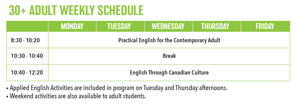 30歳以上を対象にしたプログラム。お子様がジュニア・ティーンキャンプに参加中に大人の方も参加できるプログラムです。授業は、8:30~12:20の午前中で、アクティビティでは、周辺観光や、料理教室、ワインテイスティングなど、大人向けのアクティビティも開催します。滞在は、お子様と一緒にホームステイや近くのホテルなども手配可能です。(アクティビティスケジュールは、詳しくはお問い合わせください。)