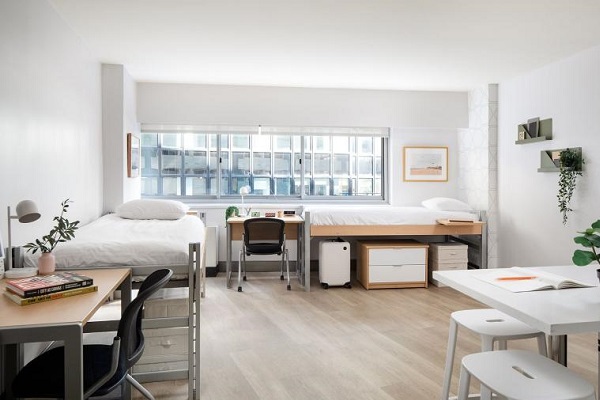 「ミッドタウン・イースト・レジデンス」は、学生専用のレジデンスで、家具付きの個室とシェアルームを提供しています。 24時間セキュリティ、高速インターネット、ランドリー、ジム、複数の学生ラウンジ、自習室、最新鋭のキッチン/リビングルームなどの共用設備があります。ニューヨークのミッドタウンに位置し、セントラルパーク、ロックフェラーセンター、5番街まで徒歩5分です。 シングルルームとツインルームには電子レンジとミニ冷蔵庫を備えています。各部屋にはツインサイズのベッド、机、椅子、ワードローブが用意されています。
