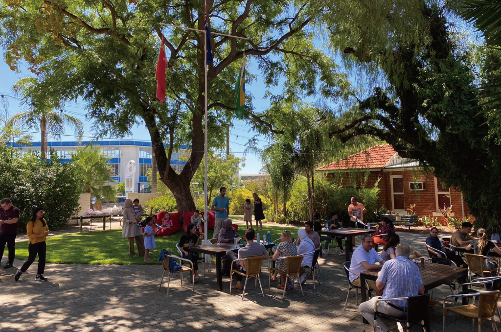 フェニックス アカデミーはパース市内より少し北に位置する住宅地に位置しています。シティ中心地から電車で1駅のリーダビル駅から徒歩約10分で、豊かな緑に囲まれた学校です。昔、高校だったキャンパスを利用しており、自然あふれる中庭が学生の憩いの場になっています。また、この中庭ではアクティビティの一環として、無料でBBQが開催されています。
