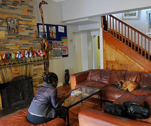 授業が終わると同時に生徒たちが集まり談笑したり、お茶を飲んだり、ブレイクタイムを過ごせるコモンルームがあります。アフリカらしいオブジェもあり、センスの良さを感じさせる空間です。校内は無線LANを無料で利用できます。デスクトップPC(日本語閲覧可、キー入力は不可)も数台あるので、休憩時や放課後にメール送信等、ご利用いただけます。